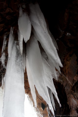 A small cave down by the ocean's shore in Oak Bay, New Brunswick. I crawled in to get this picture of the ice hanging down across the entrance.