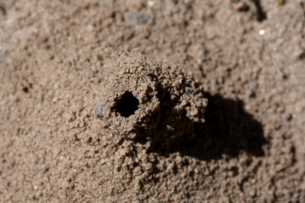A small anthill tube built in the sand.