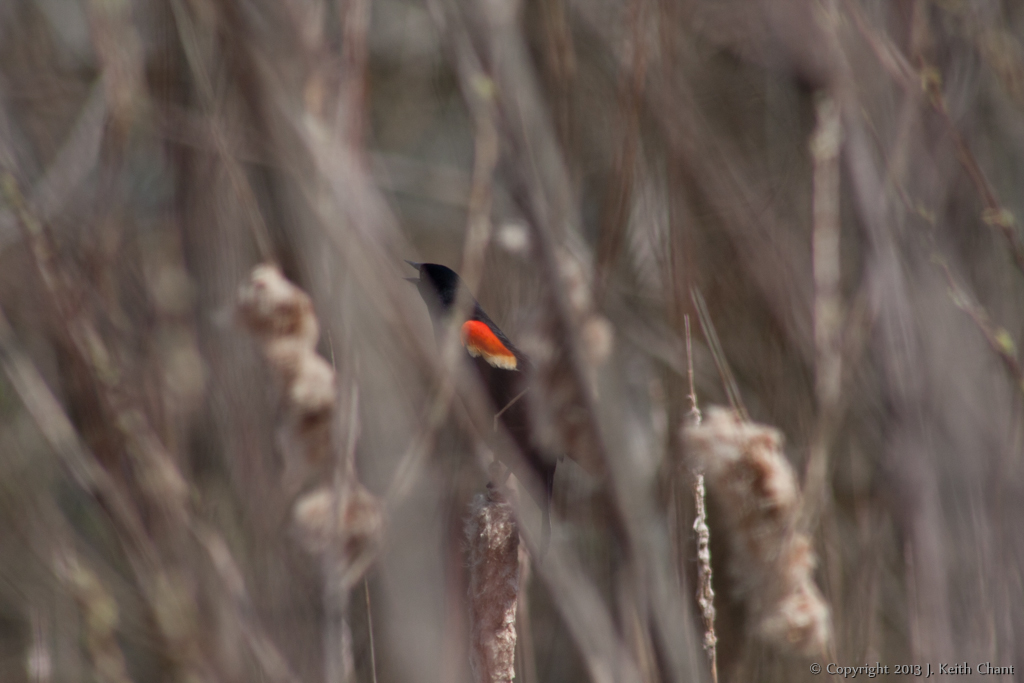 Blackbird in the Reeds: A Red-winged Blackbird singing in the reeds.